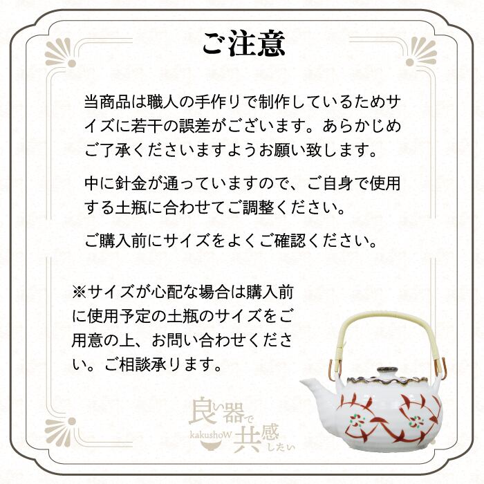 当店で販売している10号土瓶に標準で付属している「つる」のみの販売となります。
